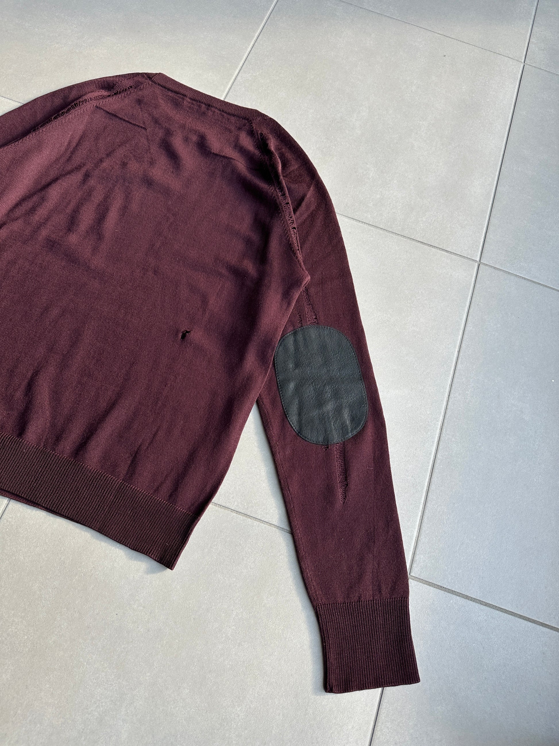 Dior Homme AW04 “VOTC” runway distressed suede elbow patch sweater